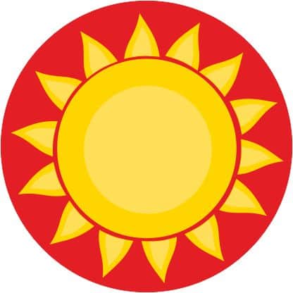 Bei diesem Sujets änder sich das Bild von einer Rakete mit schwarzem Hintergrund hin zu einer strahlend gelben Sonne auf rotem Hintergrund.